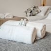 Offriamo ai nostri ospiti un welcome kit di dotazioni con tabs detersivo, sapone, bagnoschiuma e shampoo per il vostro primo giorno di permanenza.