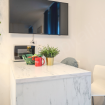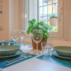 La cucina è moderna e completamente attrezzata: lavastoviglie, piano cottura a induzione, stoviglie, pentole e ogni utensile utile per preparare una colazione lenta o una cena speciale. A disposizione anche Wi-Fi veloce e TV, per restare connessi o godersi un film a fine giornata.