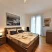 The living room leads to a hallway that leads to the bathroom and the double bedroom. The bedroom is equipped with a wardrobe with double doors, a chest of drawers, a double container bed, bedside tables and its own balcony with western exposure. The bathroom with window is comfortable and functional and equipped with washbasin, WC, bidet, shower cubicle, heated towel rail and washing machine.