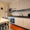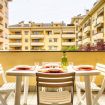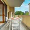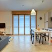 Modern two-room apartment in a quiet and elegant residential context. The flat on the first floor with lift has a bright open space with a large private terrace, air conditioning, sofa bed and kitchenette equipped with oven, Nespresso coffee machine, dishwasher and induction hob. The bedroom has a double bed and two single bunk beds. Finally, the bathroom is windowed with a shower cubicle, washing machine and sanitary fittings.